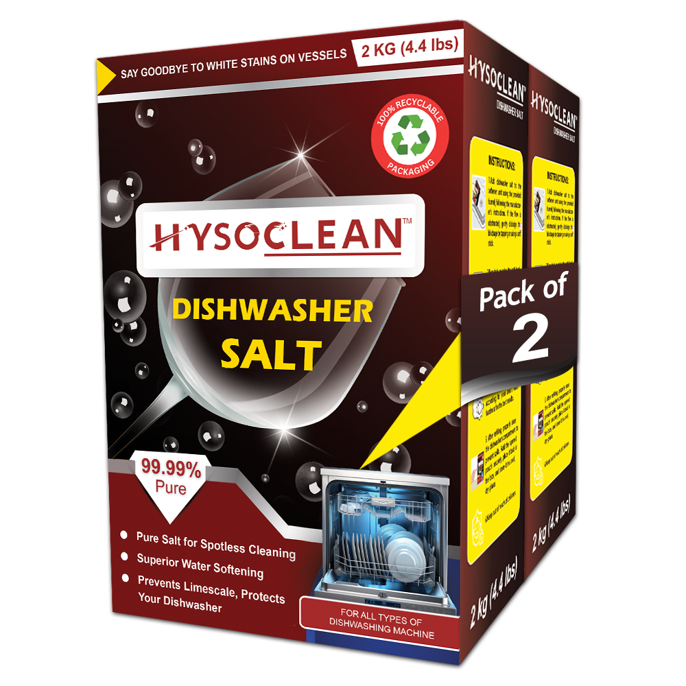This is a pack of 2, each 2 kg, total 4 kg. Transform your dishwashing routine with this Dishwasher Salt a premium trademarked product. Crafted with 99.99% pure salt, this premium formula softens hard water, prevents limescale buildup, and ensures your dishes emerge spotless and streak-free. Say goodbye to white stains and hello to sparkling clean results every time! Compatible with all dishwasher brands, this salt prevents limescale buildup and extends your machine’s lifespan. The convenient package comes in recyclable packaging and features clear usage instructions. For best results, simply add to your dishwasher’s salt compartment as needed. Store in a cool, dry place after refilling the salt compartment. This professional-grade salt ensures your dishes emerge sparkling clean while maintaining your dishwasher’s peak performance through superior water treatment.